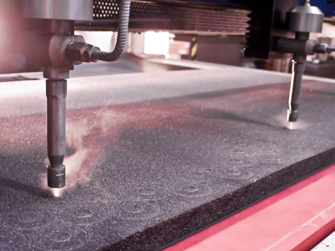 L’azienda dispone di due macchine a getto d’acqua con area di lavoro di 4000×2000 mm e di 3000×2000 mm con uno spessore di taglio fino a 200 mm.